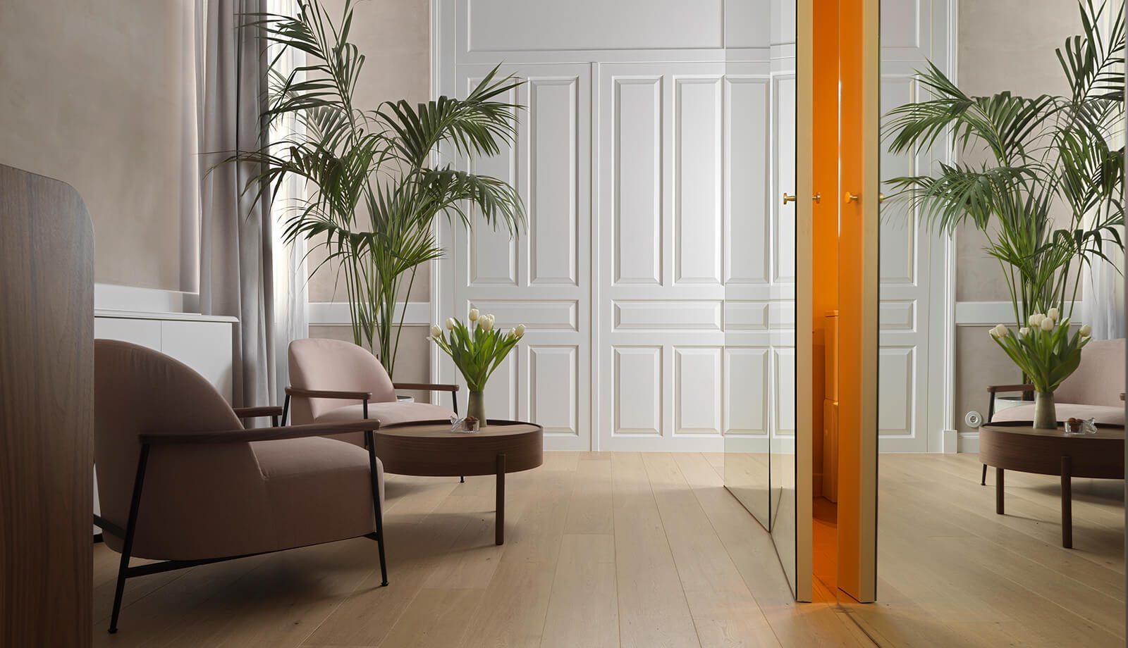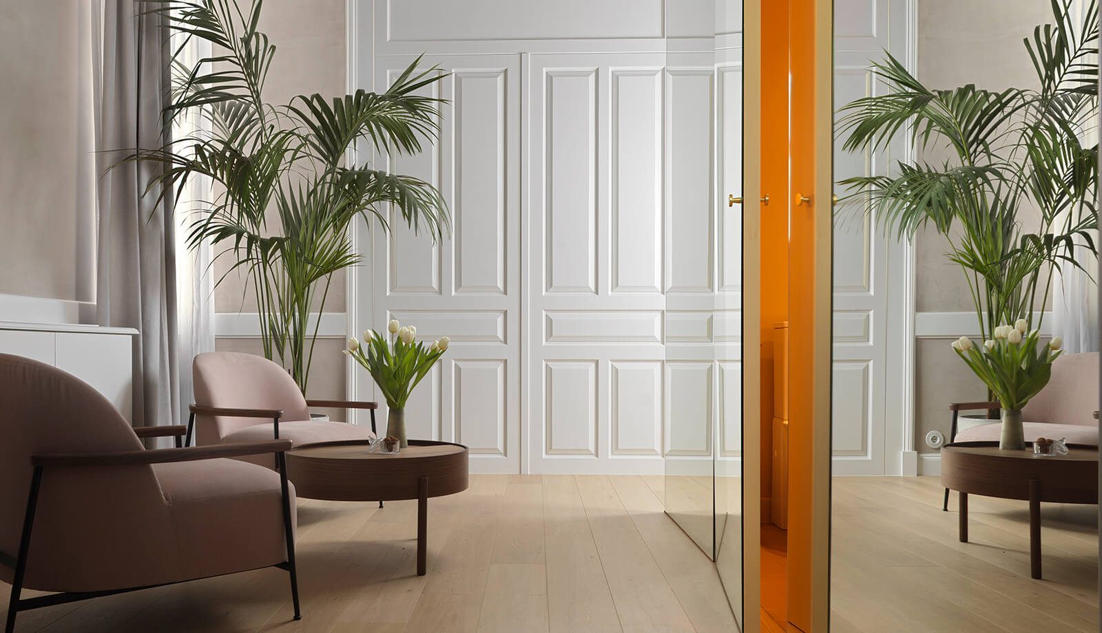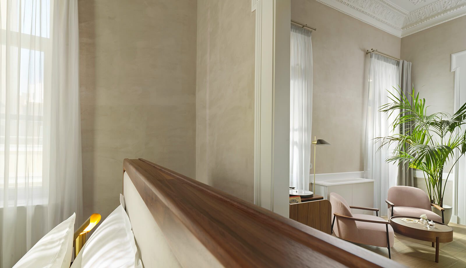 The daring selection of GUBI, WOUD and MENU masterpieces allow the room to beam with design brilliance. To stimulate your senses and calm your mind in an ambiance of evocative style. Encompassing a gracious space of 40 square meters Echo is split into a classy bedroom with a king size bed and a stylish sitting area opening out to your private balcony where you can relax and unwind in view of your surroundings. The plaster moulding designs and hand-painted ceiling masterpieces along with the full wall mirrors create a symphony of harmony and charm that inspire the ultimate relaxation.