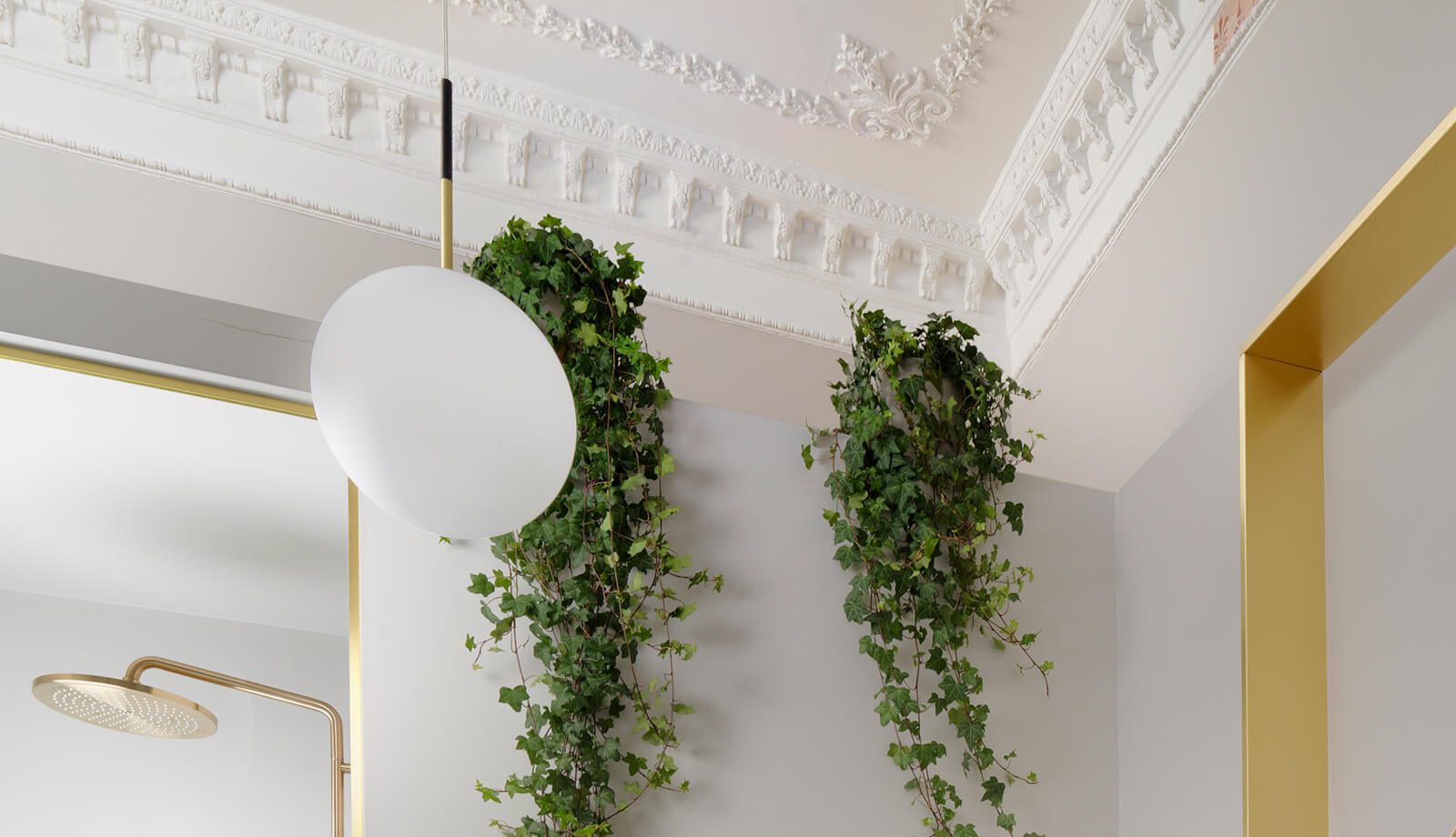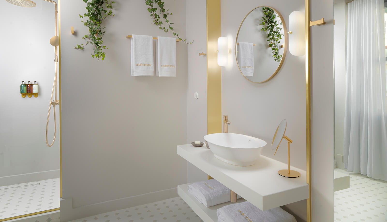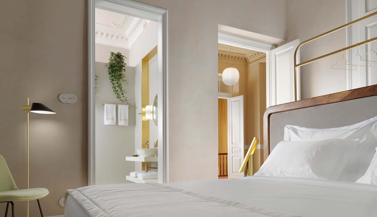 With &Tradition elements tying tradition with innovation, Lucent reflects the beauty of the past and present in its stylishly appointed 28 square meters. The Coral Seaurchin large pendant light, handmade in Spain, is inspired by the beauty of coral reefs assuming an organic appearance that illuminates the space. The plaster acanthus moulding which runs the ceiling adds a distinctive character to the room that is perfectly complemented by the design allure granting your senses a calming escape. The king size bed, intricately designed and handmade to elevate the quality of your sleep enhances the overall feeling of euphoria. Extra spacious and ultra-stylish, the bathroom on the other hand will be your companion for an extra comfortable stay.