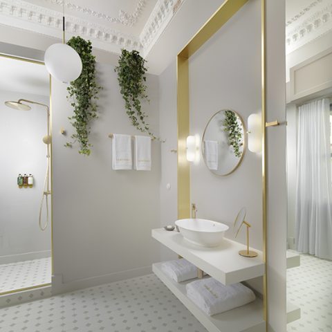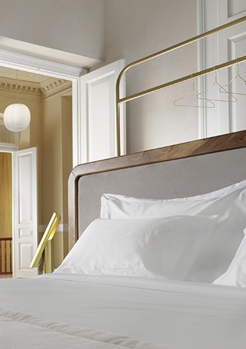 With &Tradition elements tying tradition with innovation, Lucent reflects the beauty of the past and present in its stylishly appointed 28 square meters. The Coral Seaurchin large pendant light, handmade in Spain, is inspired by the beauty of coral reefs assuming an organic appearance that illuminates the space. The plaster acanthus moulding which runs the ceiling adds a distinctive character to the room that is perfectly complemented by the design allure granting your senses a calming escape. The king size bed, intricately designed and handmade to elevate the quality of your sleep enhances the overall feeling of euphoria. Extra spacious and ultra-stylish, the bathroom on the other hand will be your companion for an extra comfortable stay.