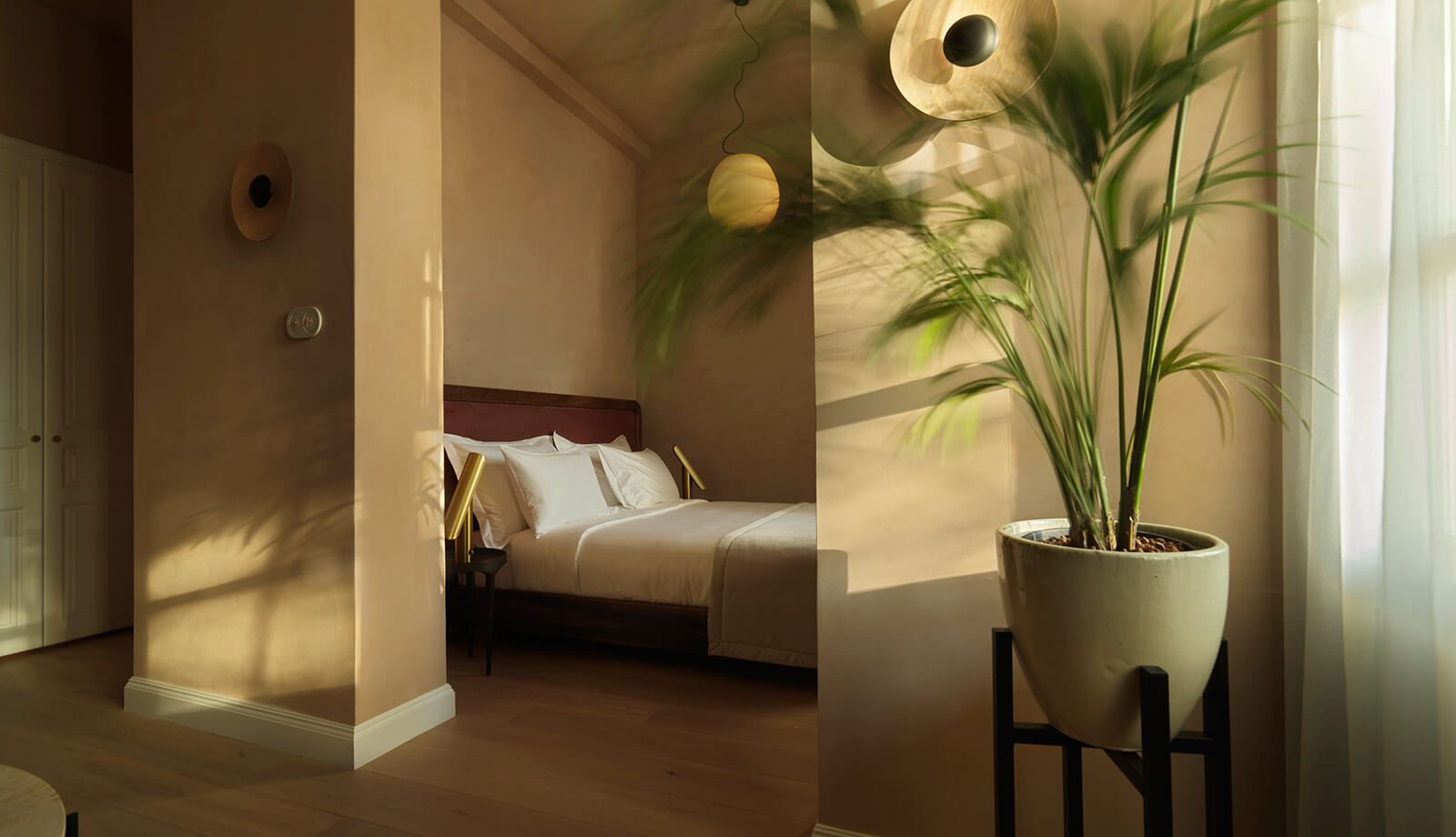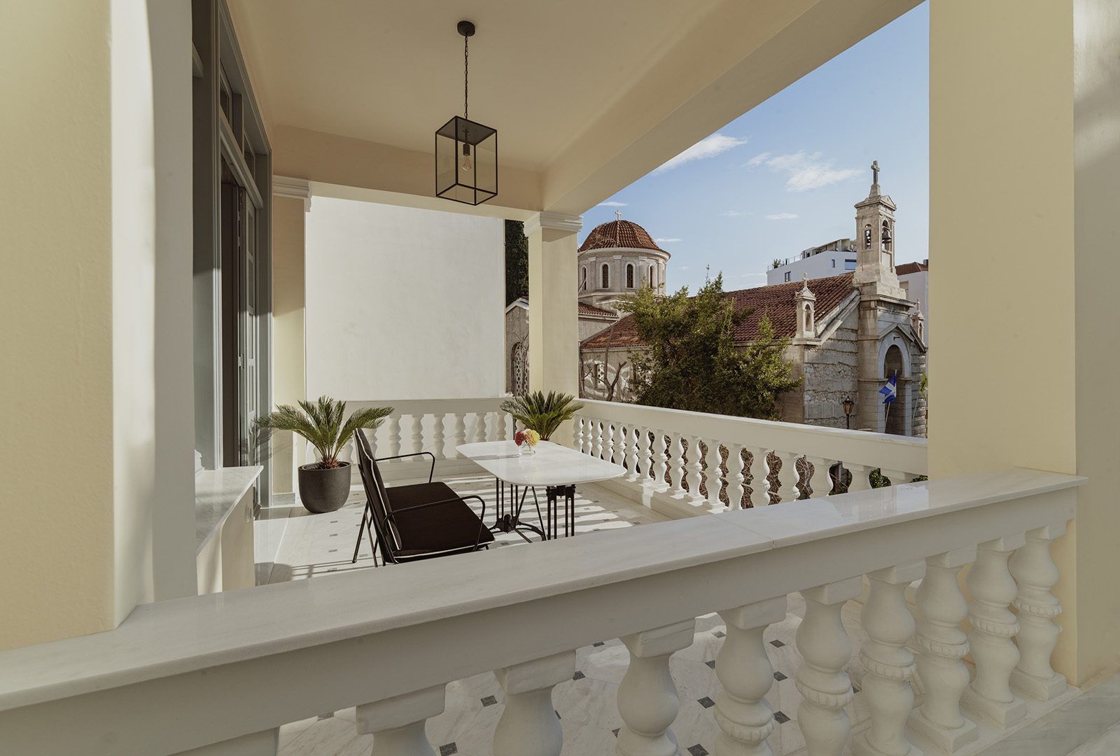 Overlooking the historic church of Agios Dimitrios in Psyrri, you are welcome to feel the city’s pulse and vibrancy while surrounded by the Athenian history and culture. Extra spacious and inviting, Muse offers a chic urban hideaway in the heart of the city. Covering a space of 30 square meters, Muse is divided into two open areas, a stylish bedroom with a custom-made Queen size bed and a sitting area in perfect accordance with &Tradition and WOUD furniture opening out to a private veranda where you can relax and unwind.