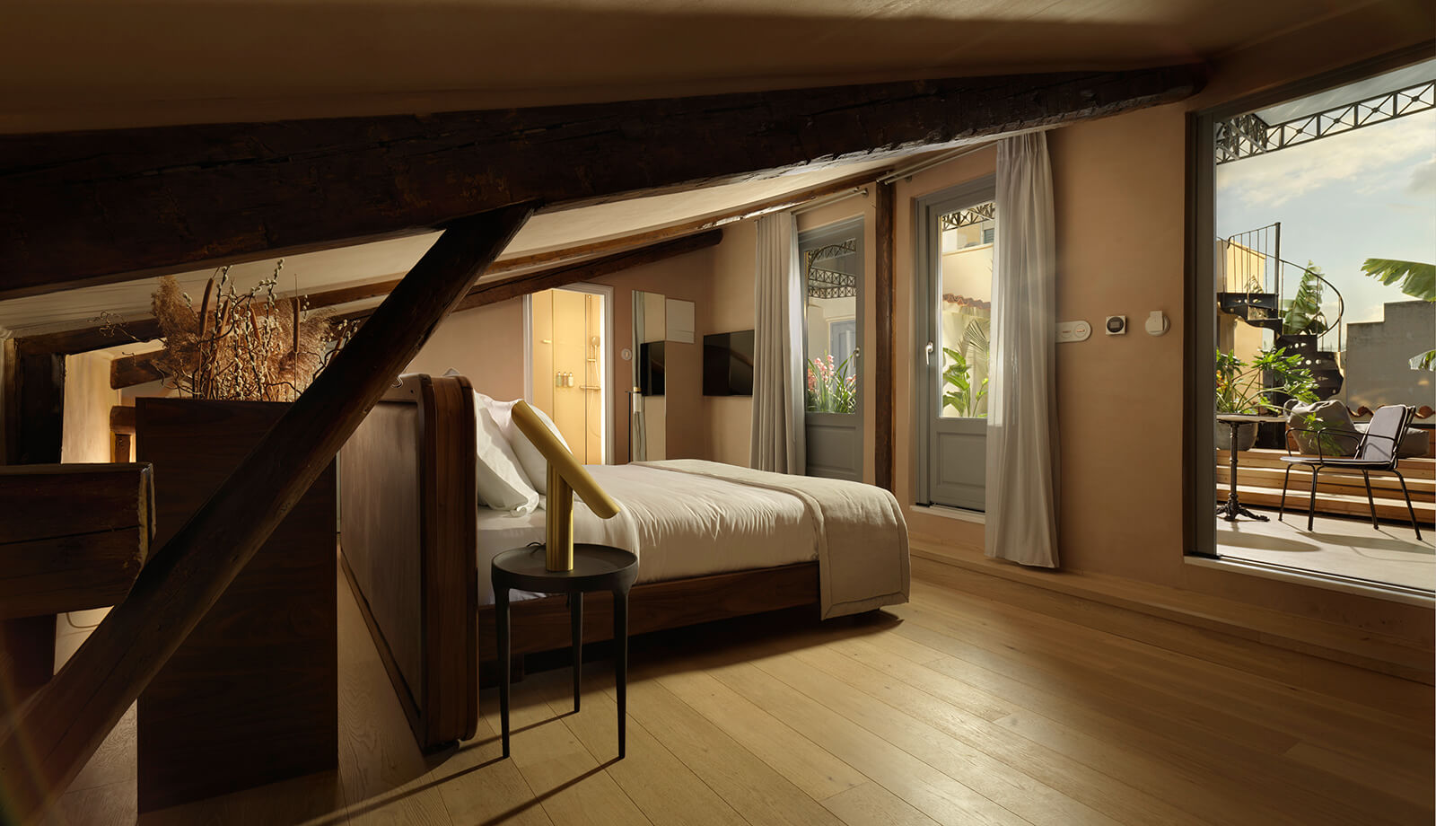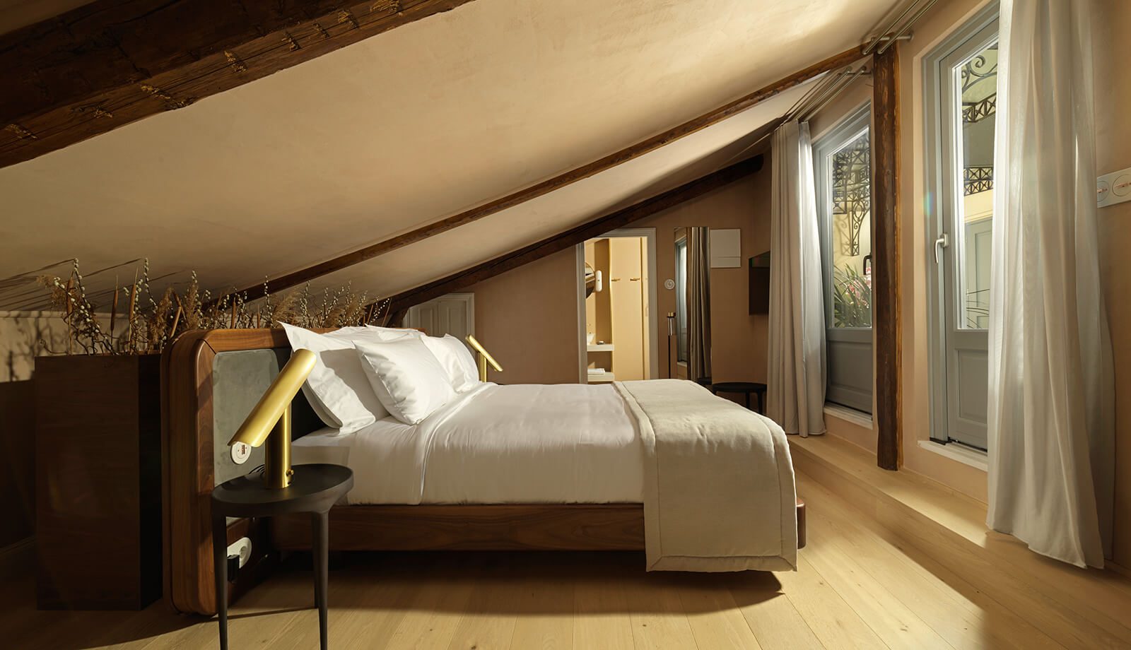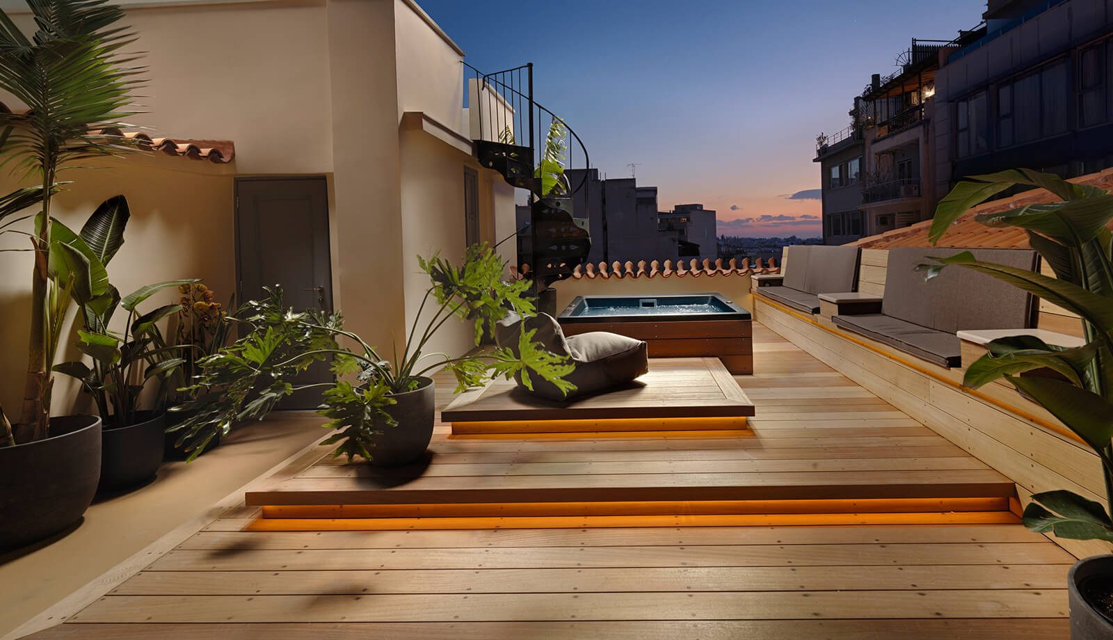 Rethinking tradition through a modern perspective with NORR11 furniture and &Tradition creations, Nidus fosters an atmosphere of intimacy and romance for genuine romantic interludes in the heart of Athens. Located on the rooftop, Nidus enjoys an unrivalled sense of privacy and allure over 31 square meters of space. Dream away in the comfort of our specially designed king size bed, plunge in the outdoor jacuzzi and gaze up at the Acropolis.